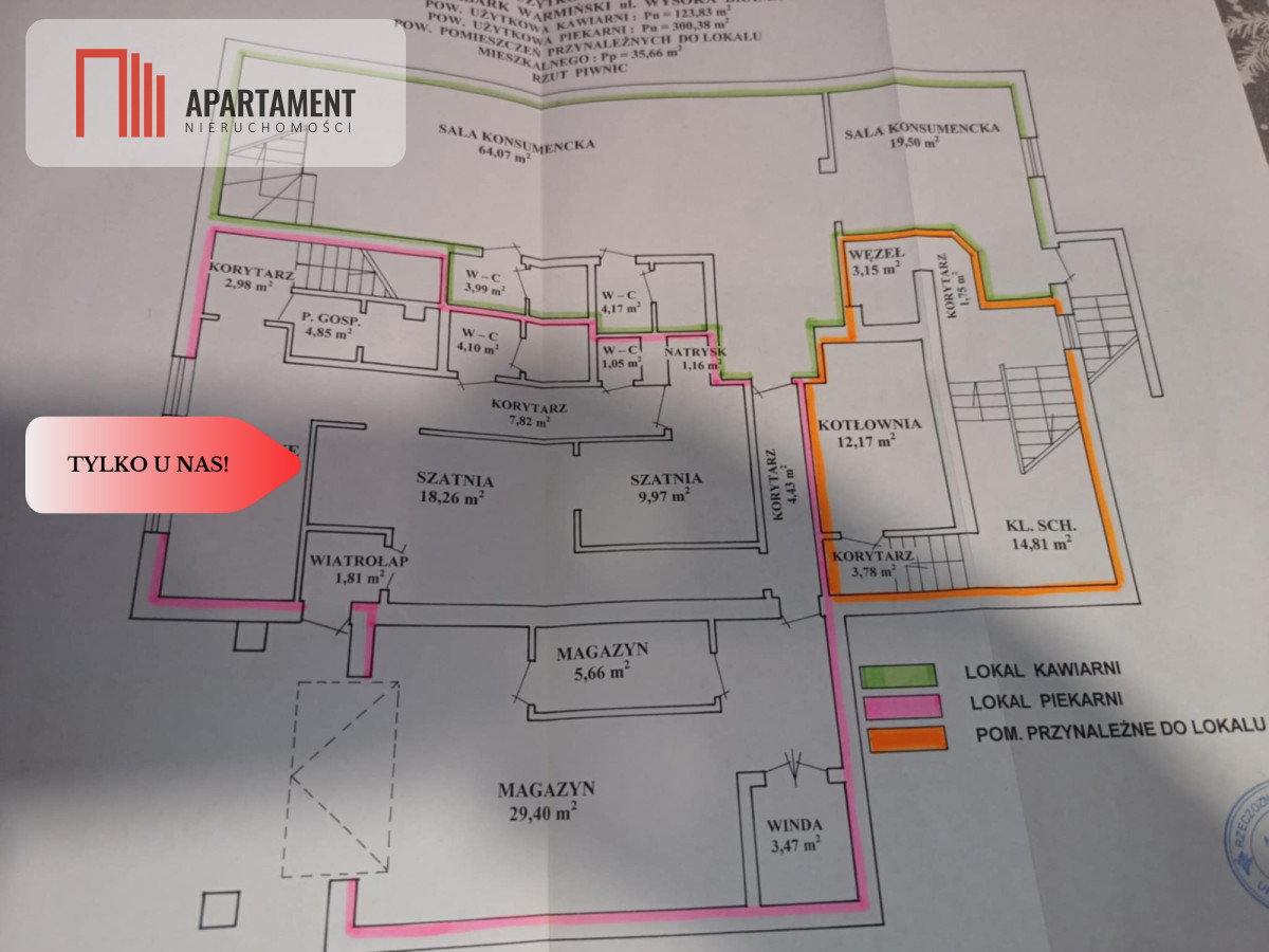 -lokal kawiarni-32.10m2 oraz sale konsumenckie- 64.07m2 i 19.50m2
