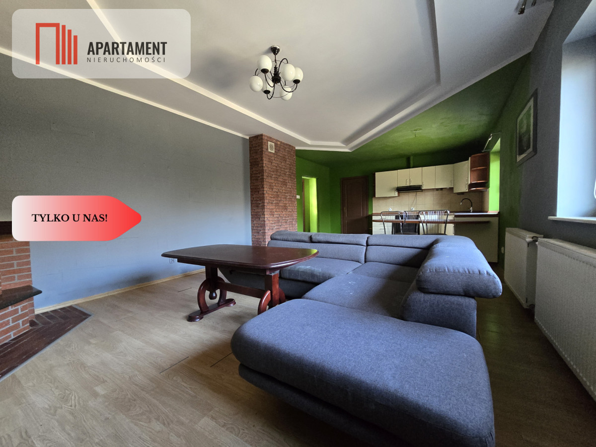 - salon z kominkiem i otwartą kuchnią ok. 35m2