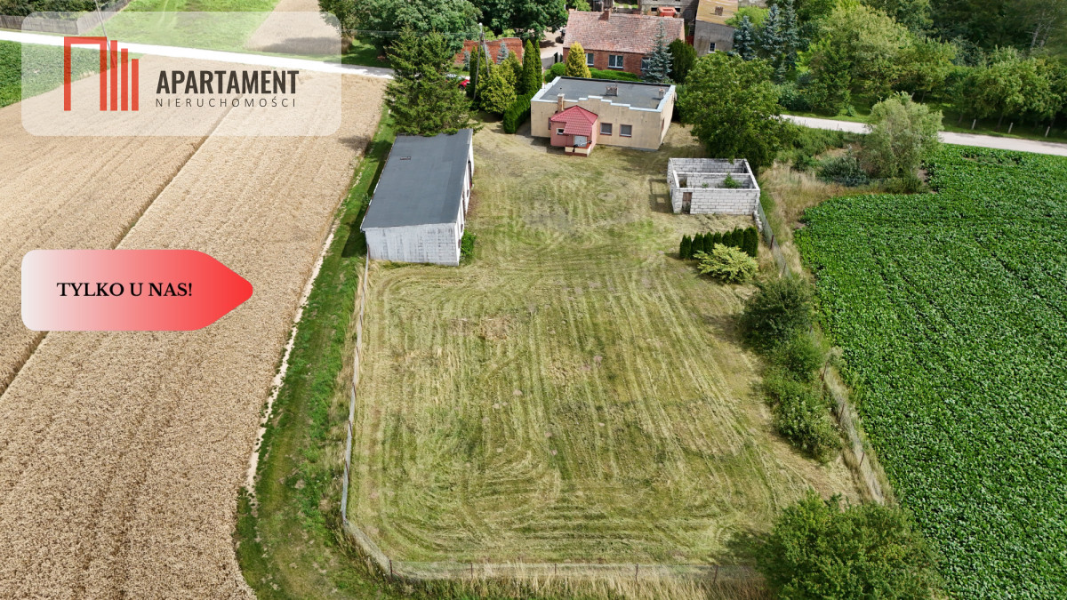 Nieruchomość na dużej działce 2200m2 zabudowana domem wolnostojącym, parterowym o powierzchni użytkowej 100m2 , budynkiem warsztatowym o powierzchni użytkowej 102m i rozpoczętą budową garażu z pomieszczeniem gospodarczym.