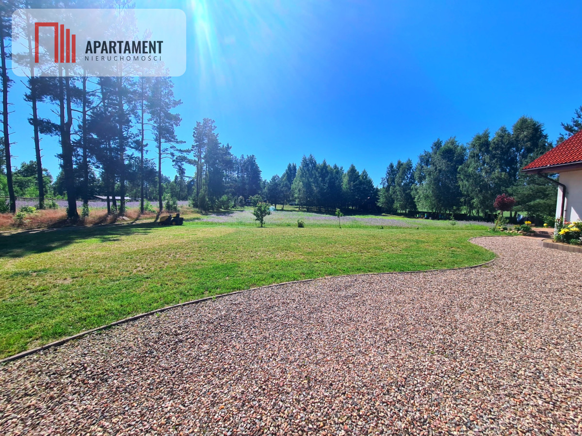 Działka jest pięknie zagospodarowana, pełna zieleni, co zapewnia spokój i intymność. Na posesji znajduje się także budynek gospodarczy, który może pełnić funkcję składu lub magazynu.