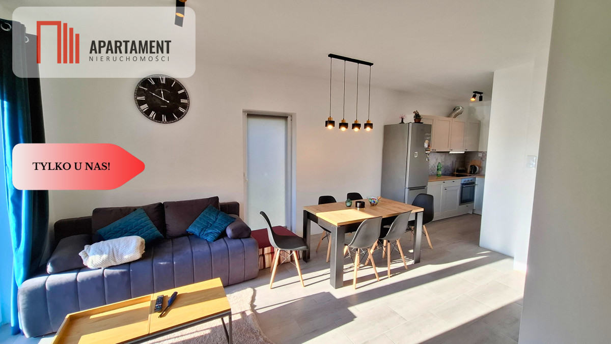 - Przestronny salon z aneksem kuchennym (26,6 m²) - kuchnia z zabudową IKEA i wyjście na słoneczny ogród od strony południowej.