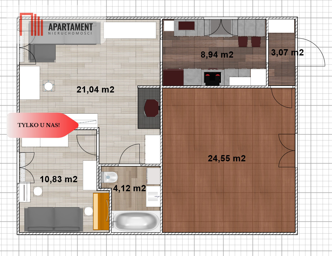 Zgodnie z Ustawą z dnia 26 lipca 2024 r. o zmianie ustawy o prawie autorskim i prawach pokrewnych, ustawy o ochronie baz danych oraz ustawy o zbiorowym zarządzaniu prawami autorskimi i prawami pokrewnymi, wykorzystywanie autorskich pomysłów, rozwiązań, kopiowanie, rozpowszechnianie zdjęć, fragmentów grafiki, tekstów opisów w celach zarobkowych, bez zezwolenia autora jest zabronione i stanowi naruszenie praw autorskich oraz podlega karze. Znaki towarowe i graficzne są własnością firmy Nieruchomości Apartament.