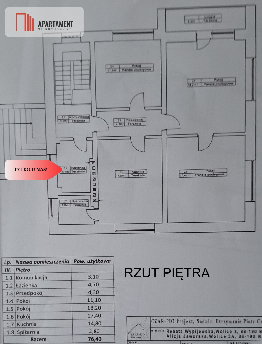 Zgodnie z Ustawą z dnia 26 lipca 2024 r. o zmianie ustawy o prawie autorskim i prawach pokrewnych, ustawy o ochronie baz danych oraz ustawy o zbiorowym zarządzaniu prawami autorskimi i prawami pokrewnymi, wykorzystywanie autorskich pomysłów, rozwiązań, kopiowanie, rozpowszechnianie zdjęć, fragmentów grafiki, tekstów opisów w celach zarobkowych, bez zezwolenia autora jest zabronione i stanowi naruszenie praw autorskich oraz podlega karze. Znaki towarowe i graficzne są własnością firmy Nieruchomości Apartament.