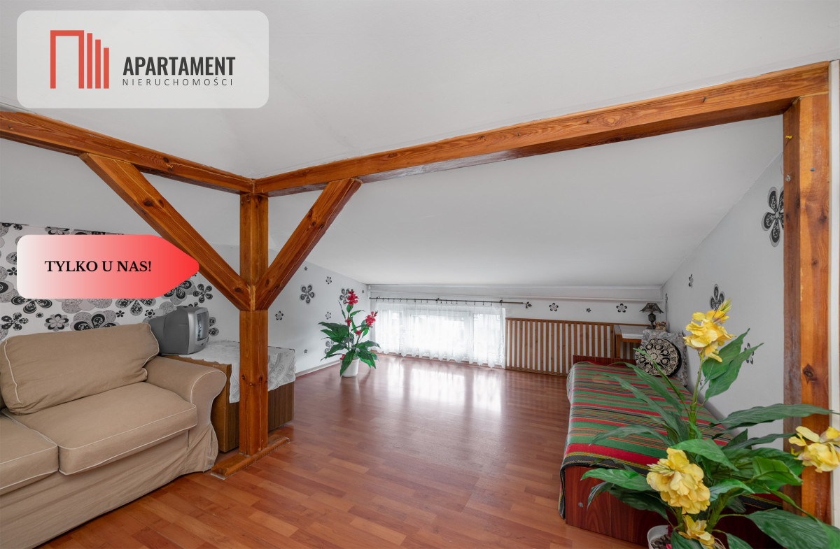 Dodatkowo na działce blaszak i domek narzędziowy. Posesja w całości ogrodzona. Media miejskie: woda, prąd, kanalizacja, gaz. Ogrzewanie domu i wody użytkowej w sezonie zimowym piecem na węgiel i drewno (możliwość instalacji grzewczej gazowej), w sezonie letnim podgrzewanie wody użytkowej bojlerem elektrycznym. Dom dobrze utrzymany, gotowy do zamieszkania. Na podłodze drewniana deska, panele, gres. Wystawa okien dwustronna. Duże okna doświetlają pokoje. Balkon od frontu i od strony ogrodu. Dojazd drogą gminną, asfaltową. Idealny dla dużej dwupokoleniowej rodziny lub inwestycyjnie pod wynajem na kwatery pracownicze gdyż na każdym piętrze znajduje się kuchnia i łazienka z wc. Niewątpliwie atutem jest lokalizacja! Spokojne osiedle domów jednorodzinnych, dookoła zieleń i spokój. W bliskiej okolicy pełna infrastruktura.