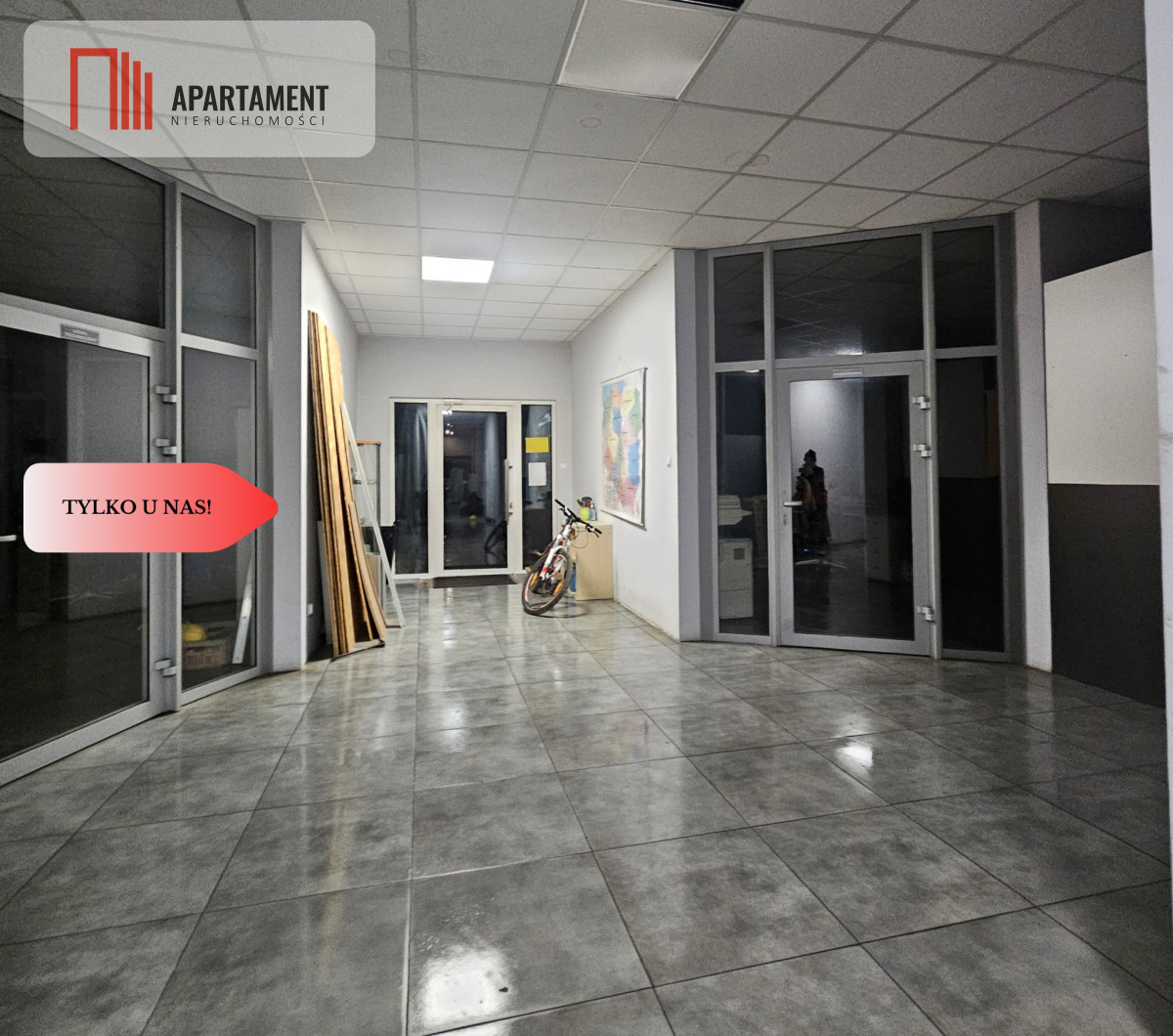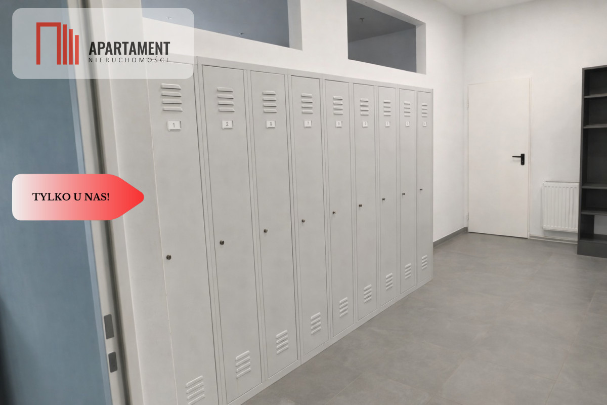 Wygipsowane ściany, terakota na podłogach, przeszklone drzwi, estetyczne i funkcjonalne zaplecze administracyjne.
