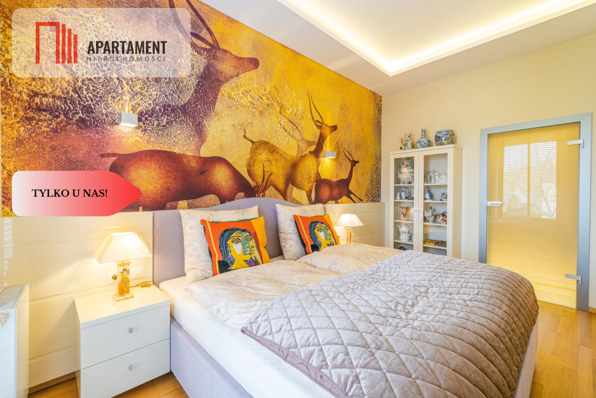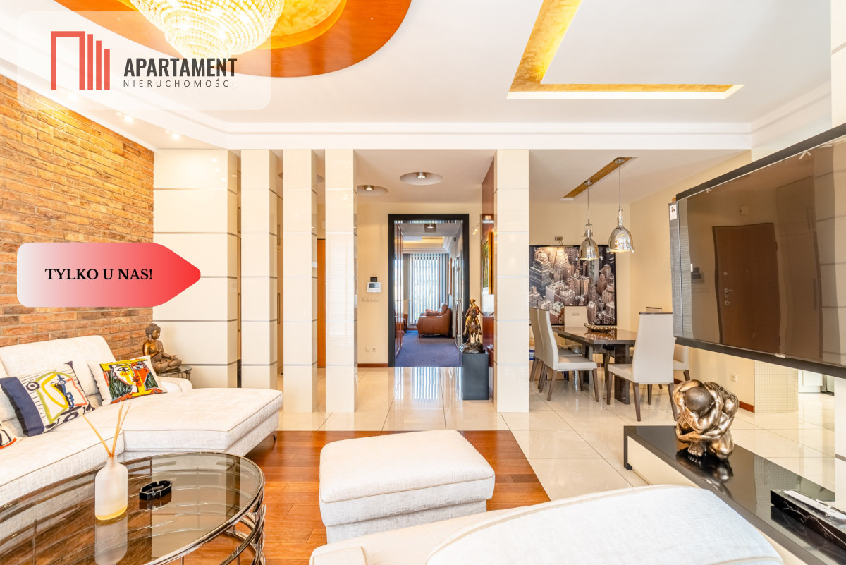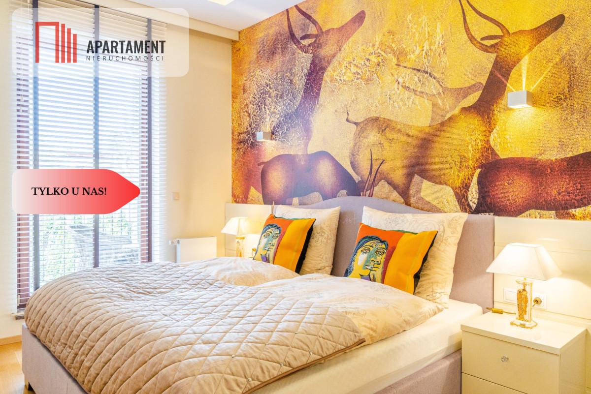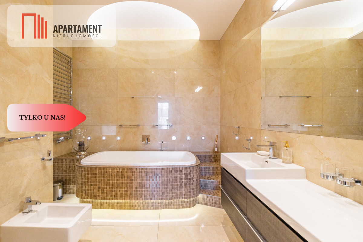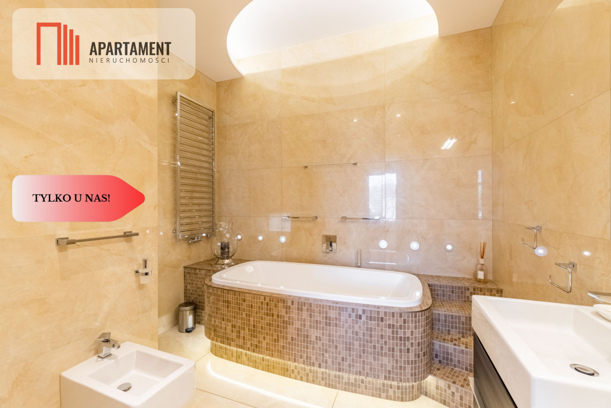 Całość zaaranżowana wg indywidualnego projektu i wykonana we współpracy z renomowanymi firmami. Niekonwencjonalne rozwiązania, dobre naświetlenie i przemyślane wyposażenie złożyło się na wyjątkowo luksusową przestrzeń. Nocne lampy firmy Rosenthal inspirowane twórczością Gustawa Klimty, eksklzywne meble Kler, oświetlenie Vangelis Chamedliers nadały przestrzeni, drewniane rolety okienne stworzyły wyjątkowy klimat oraz osprzęt takich firm jak Laufen, Grohe czy Legrand gwarantują komfort w użytkowaniu. Oferowany apartament to definicja nowoczesności i wygody w samym sercu miasta. Komfortowy układ salon z kuchnią ok ok 76 mkw., ustawne pokoje, garderoba oraz dwie łazienki / wanna ,prysznic, sauna/.