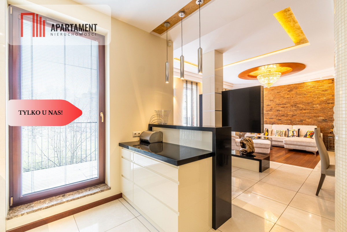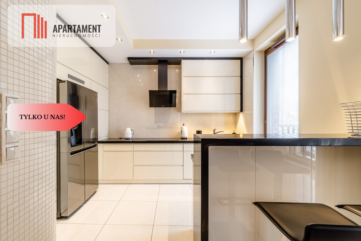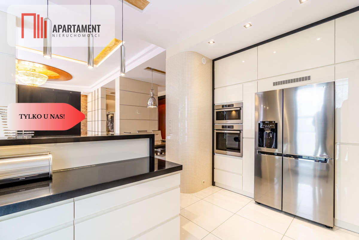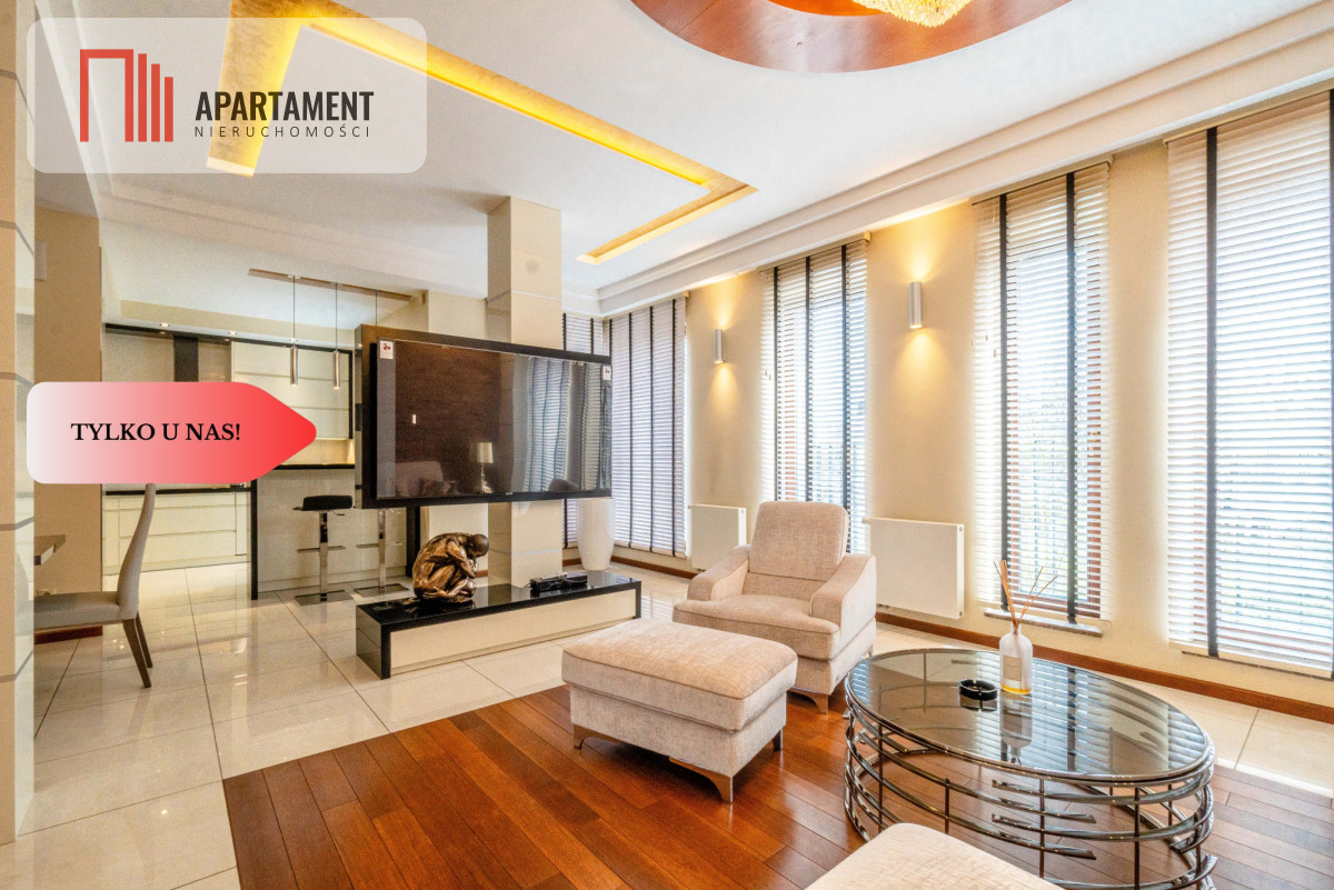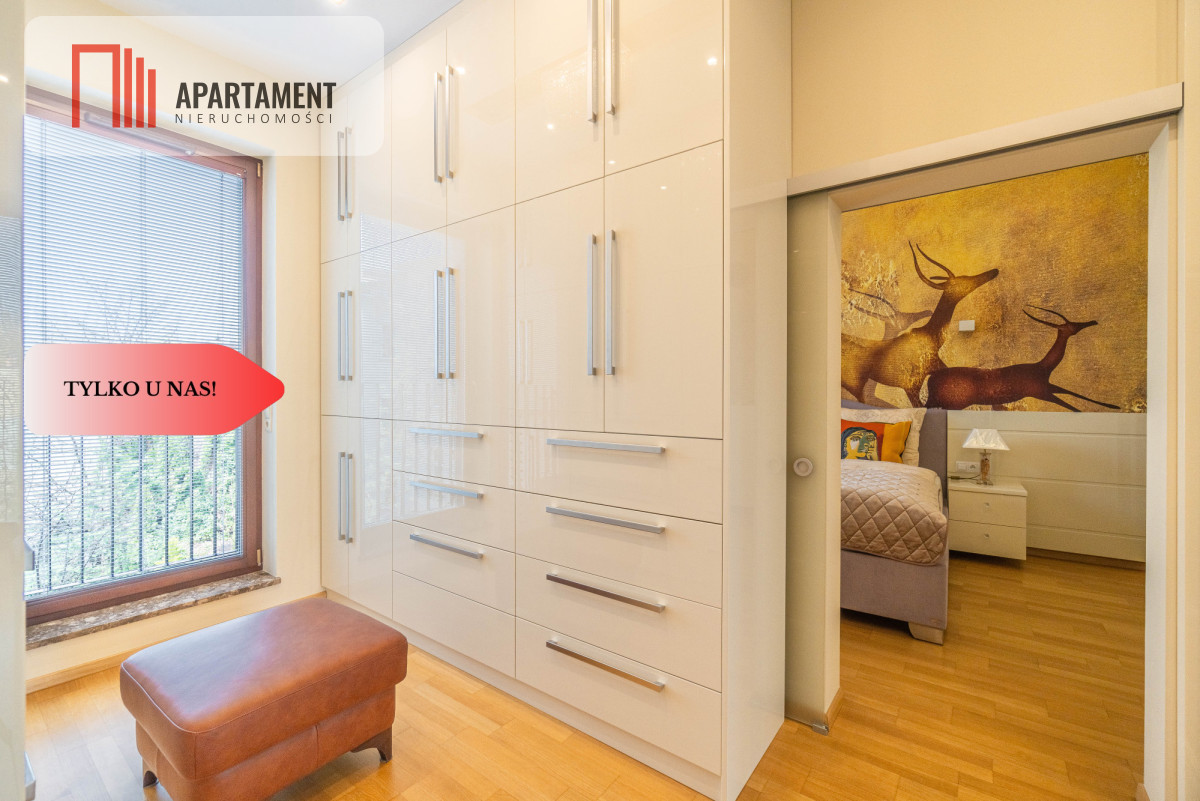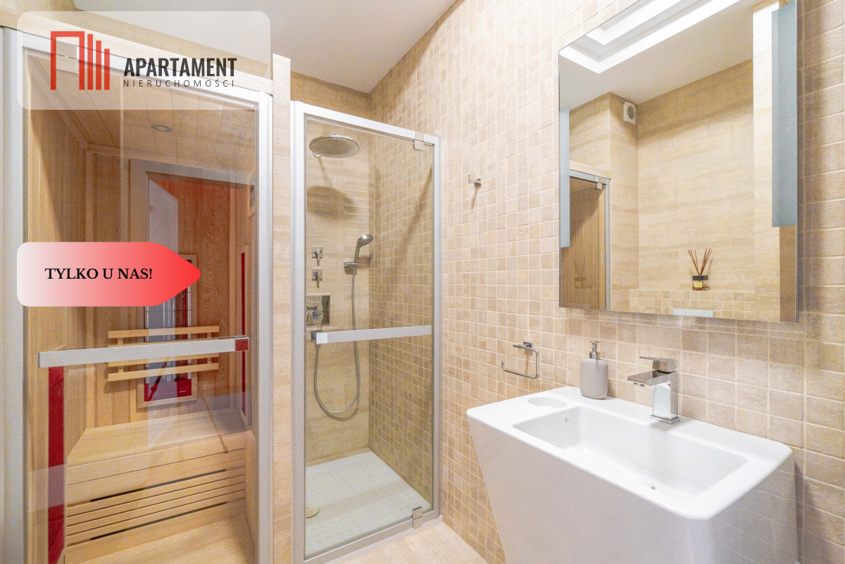 Całość zaaranżowana wg indywidualnego projektu i wykonana we współpracy z renomowanymi firmami. Niekonwencjonalne rozwiązania, dobre naświetlenie i przemyślane wyposażenie złożyło się na wyjątkowo luksusową przestrzeń. Nocne lampy firmy Rosenthal inspirowane twórczością Gustawa Klimty, eksklzywne meble Kler, oświetlenie Vangelis Chamedliers nadały przestrzeni, drewniane rolety okienne stworzyły wyjątkowy klimat oraz osprzęt takich firm jak Laufen, Grohe czy Legrand gwarantują komfort w użytkowaniu. Oferowany apartament to definicja nowoczesności i wygody w samym sercu miasta. Komfortowy układ salon z kuchnią ok ok 76 mkw., ustawne pokoje, garderoba oraz dwie łazienki / wanna ,prysznic, sauna/.