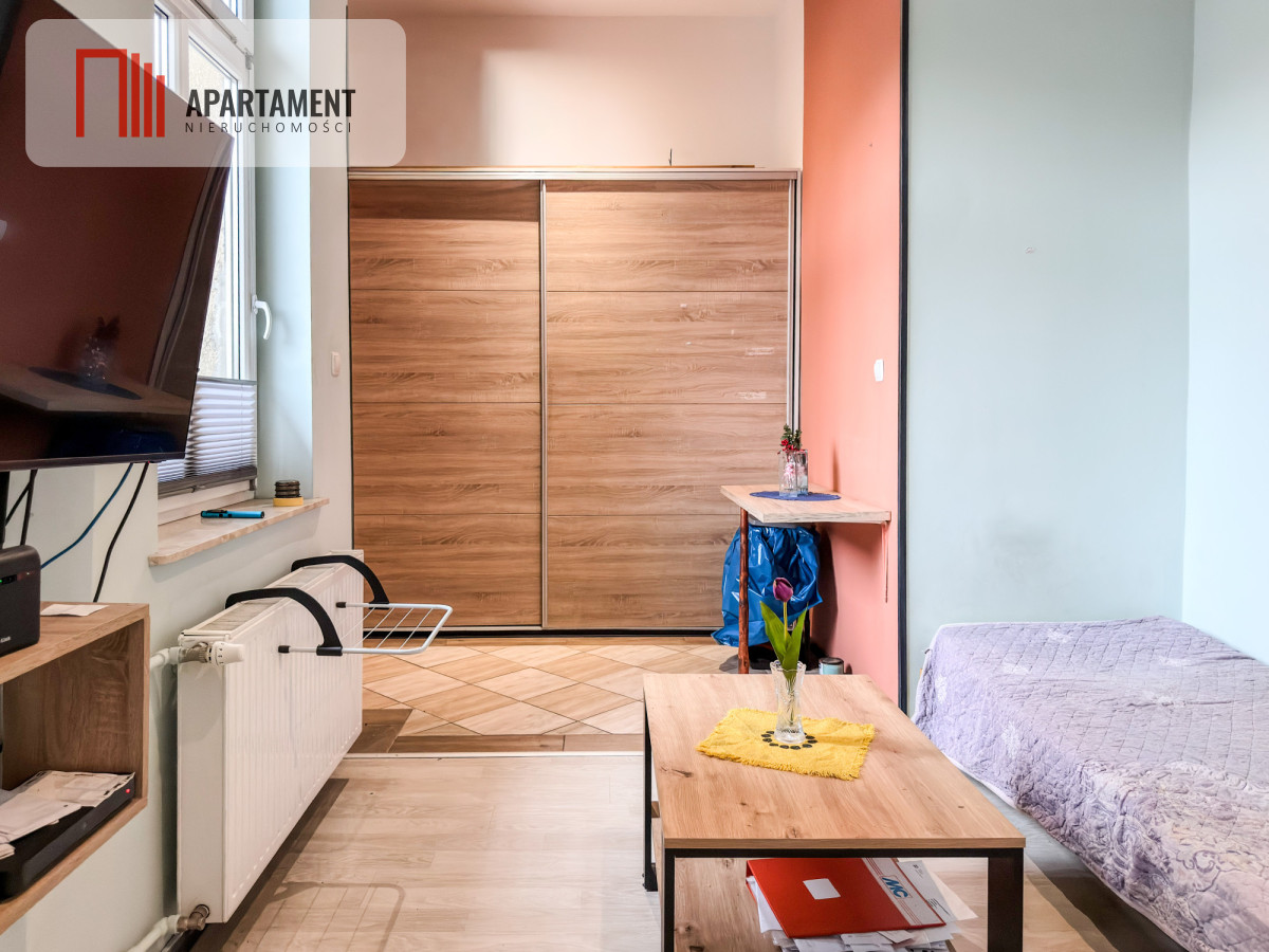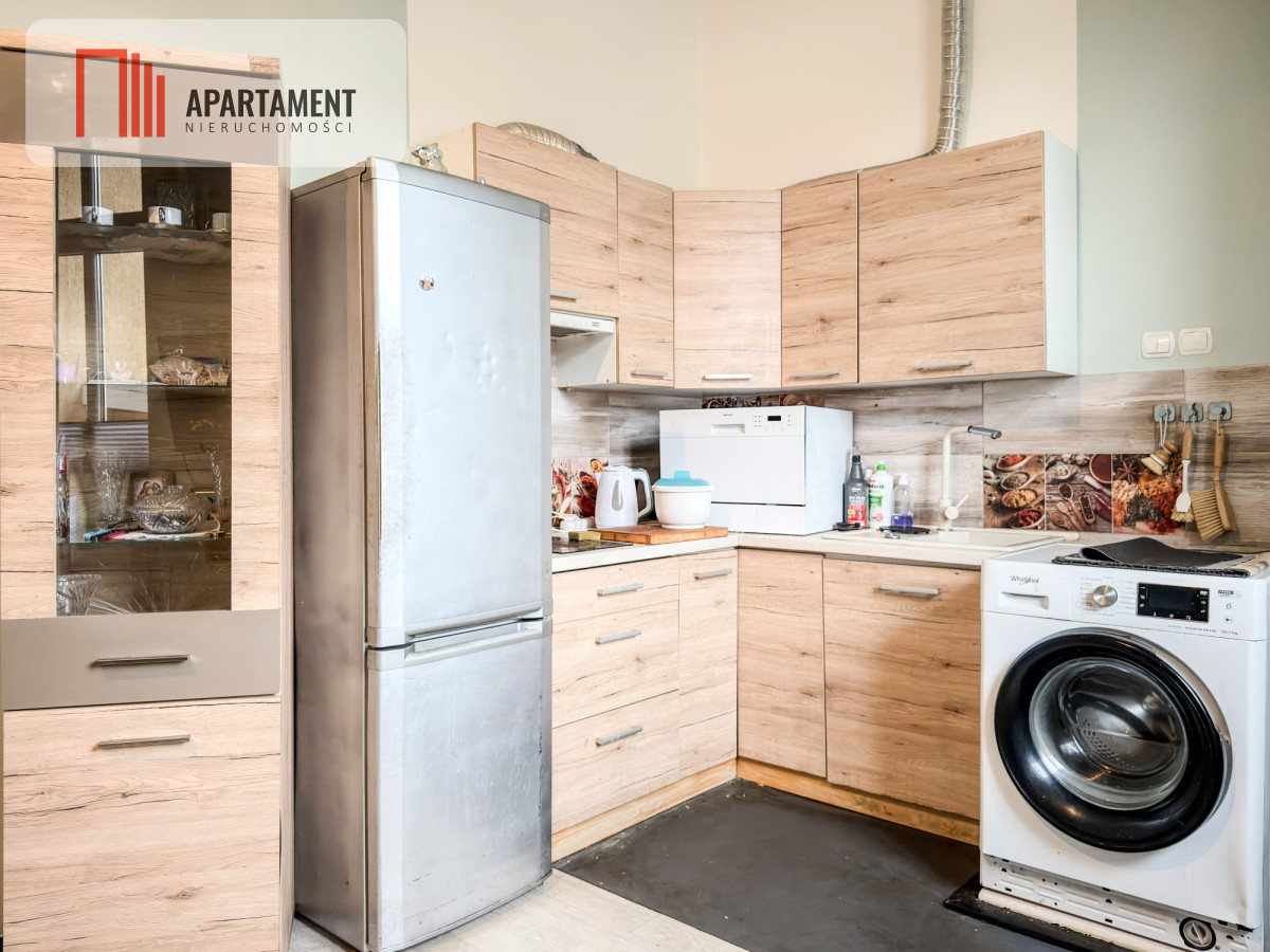 W cenie mieszkania pozostają zabudowy stałe: meble kuchenne oraz duża, pojemna szafa. (Uwaga: Sprzęt AGD oraz TV nie wchodzą w skład oferty).