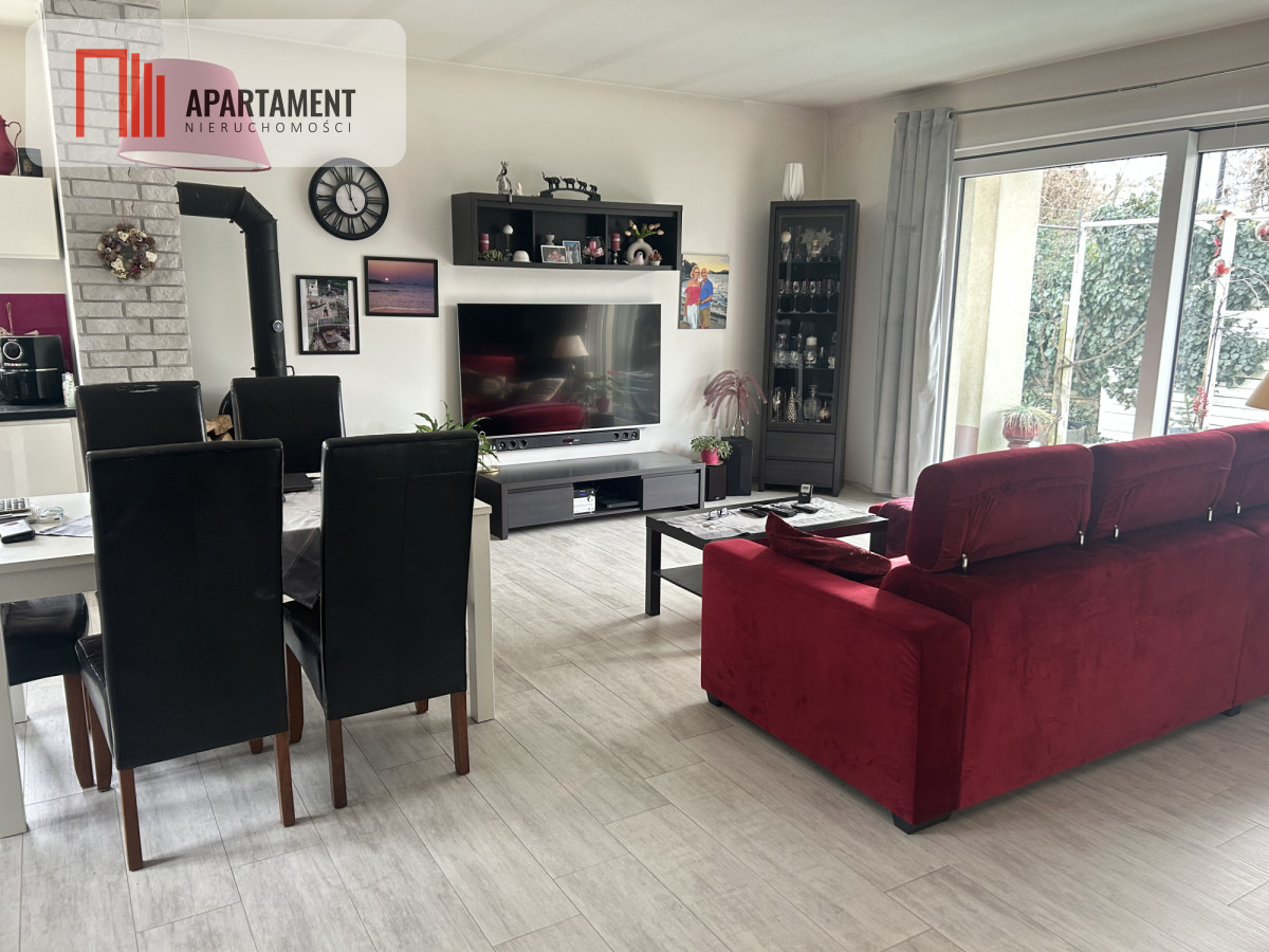 Przestronny salon 35,6 m2 z kuchnią , idealny do spędzania czasu z rodziną, z którego jest wyjście na taras,