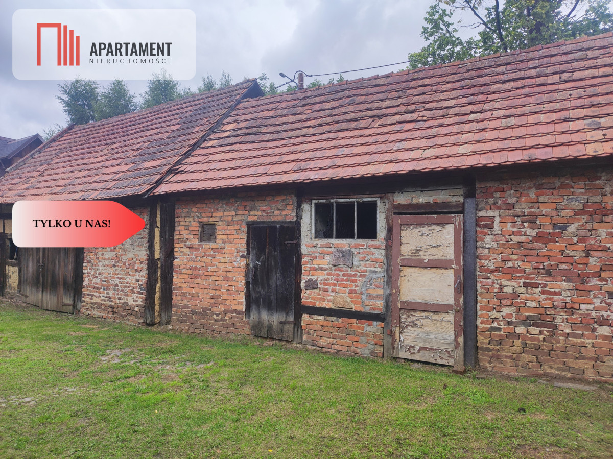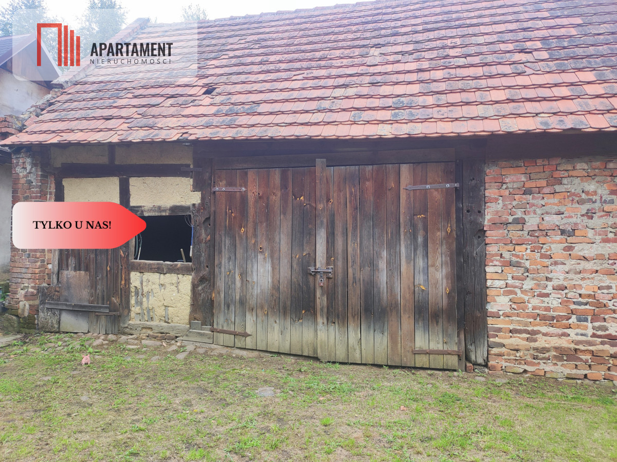 Dom z zabudowaniami i dużą działką.