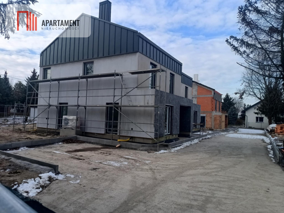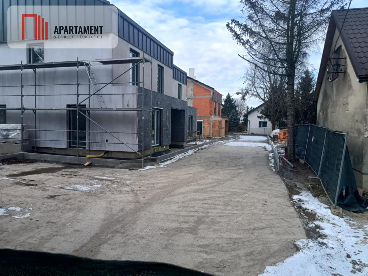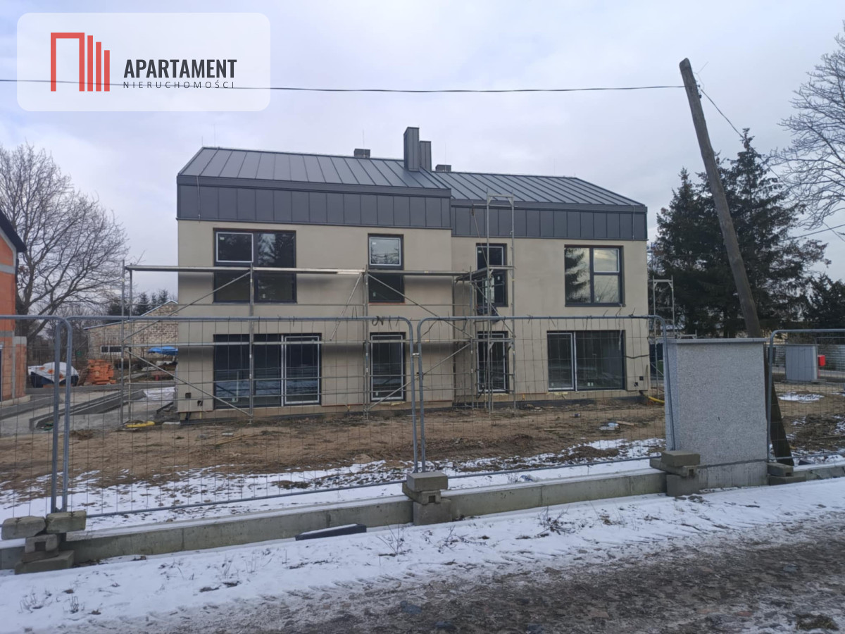 Strop żelbetowy, schody zabiegowe prefabrykowane, na parterze i na piętrze tynki na ścianach oraz sufitach zagruntowane i wybiałkowane, dach ocieplony pianką PUR, płyty GK na poddaszu, wylewki podłogowe na obu kondygnacjach, ogrzewanie podłogowe na obu kondygnacjach, okna PCV trzyszybowe z ciepłym montażem i nawiewnikami higrosterowalnymi, rolety automatyczne w każdym oknie, rozprowadzona elektryka, kanalizacja, woda, ogrzewanie - pompa ciepła Beretta 8 kW, uzdatniacz wody. Dach - blacha panelowa Blachotrapez, balkony wykończone elegancką balustradą szklaną. Całkowicie wykończony teren wspólny: wjazd na posesję przez automatyczną bramę marki Wiśniowski z napędem firmy Nice, drogi wewnętrzne i miejsca parkingowe zewnętrzne wyłożone płytą ażurową.Dodatkowo, domy będą miały gotowe tarasy z wysokiej klasy płytki antypoślizgowej. W ogródku nawieziemy czarnoziem, dzięki czemu ta przestrzeń będzie od razu gotowa do własnej aranżacji. W częściach wspólnych sadzimy tuje i jabłonie.