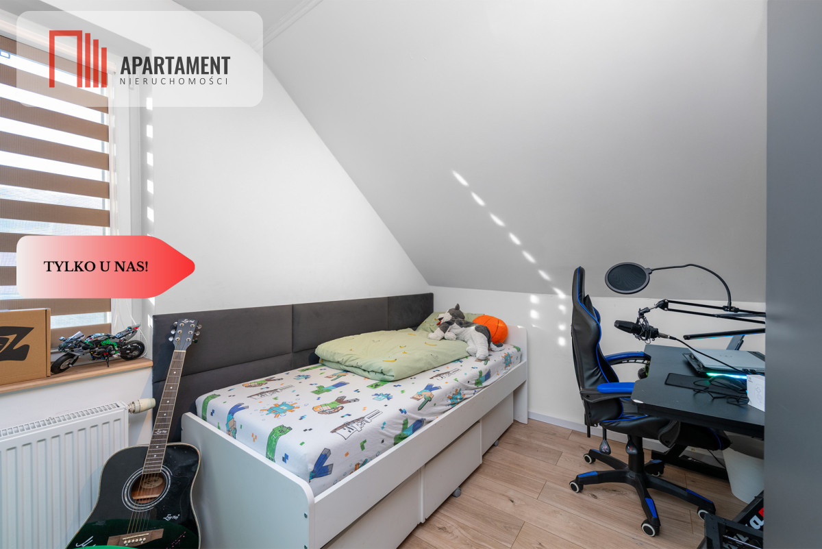 Na 1 piętrze znajduje się salon z jadalnią ,kuchnią łazienką,3 sypialnie oraz duży taras.