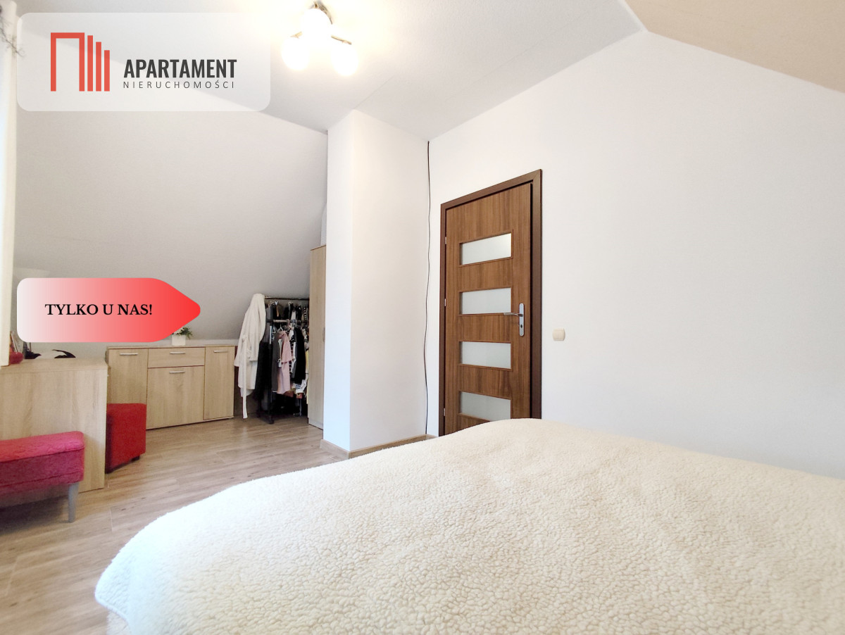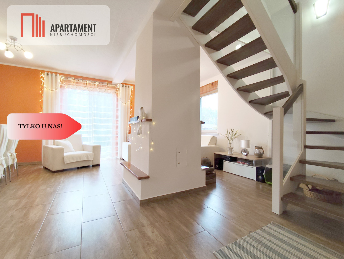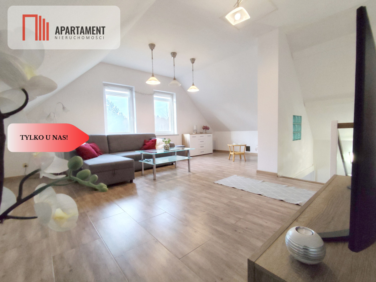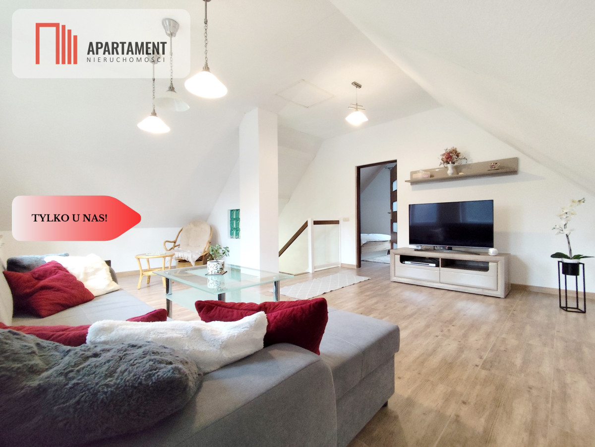 Dom został wybudowany w 2013 roku i charakteryzuje się funkcjonalnym układem pomieszczeń. Na parterze znajduje się strefa dzienna z wiatrołapem, komunikacją ze schodami, przestronnym salonem z kuchnią oraz łazienką. Z salonu prowadzi wyjście na taras o powierzchni 14,20 m², który doskonale sprawdzi się jako miejsce relaksu i spotkań z bliskimi. Poddasze stanowi część domu, gdzie mieszczą się dwa przytulne pokoje oraz komunikacja. Powierzchnia użytkowa nieruchomości wynosi 76,31 m².