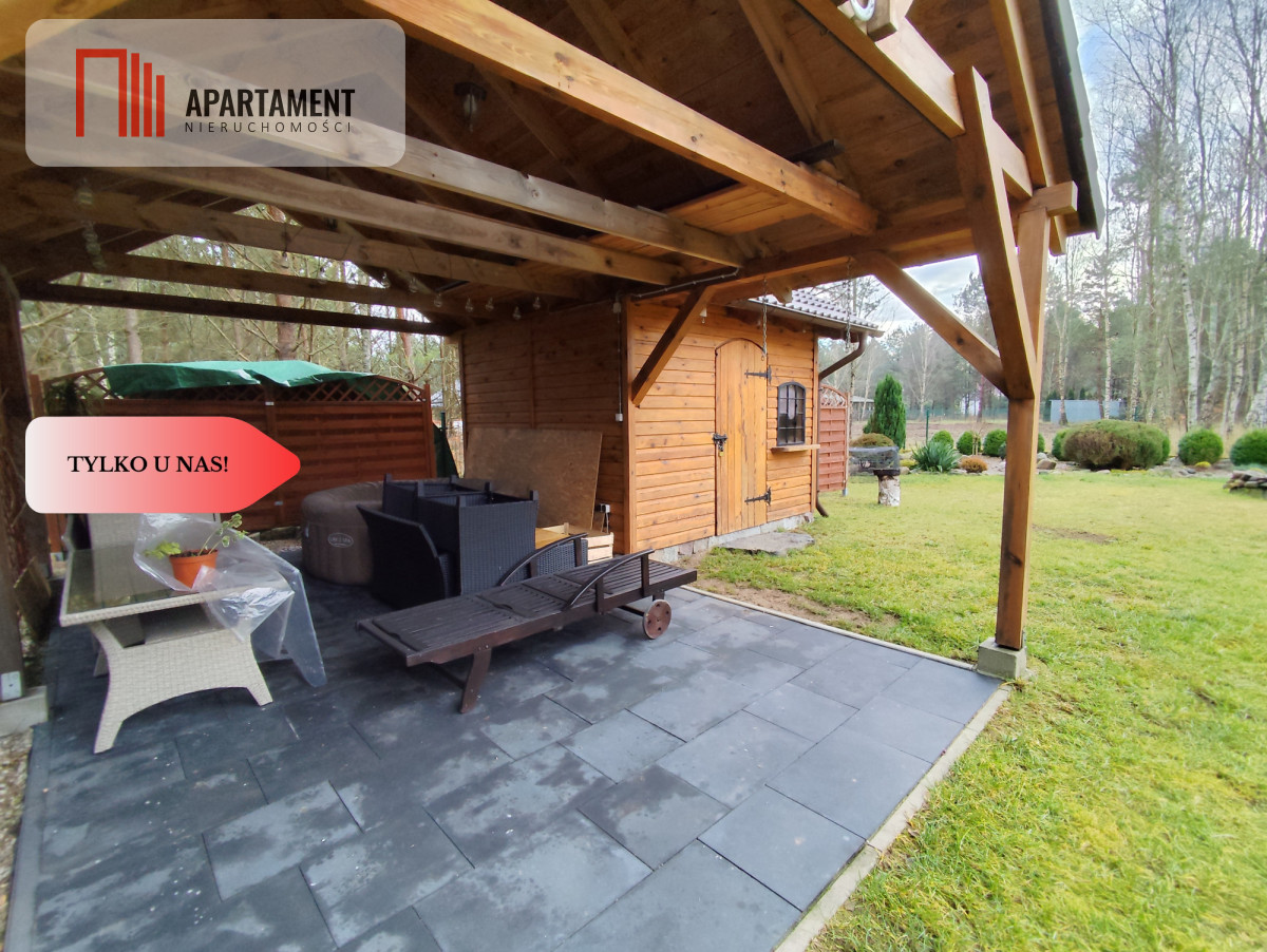 Na działce znajduje się również drewniane pomieszczenie gospodarcze o powierzchni 9 m² oraz drewniana wiata o powierzchni 22 m², obecnie wykorzystywana rekreacyjnie, z możliwością adaptacji na miejsce dla samochodu.