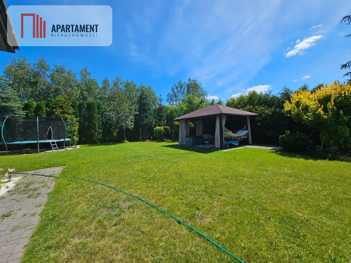 Na działce znajduje się zadbany ogród otoczony żywopłotem, który zapewnia pełną prywatność. Dodatkowym atutem jest klimatyczny domek ogrodowy - idealny do relaksu, pracy zdalnej czy spotkań z bliskimi.