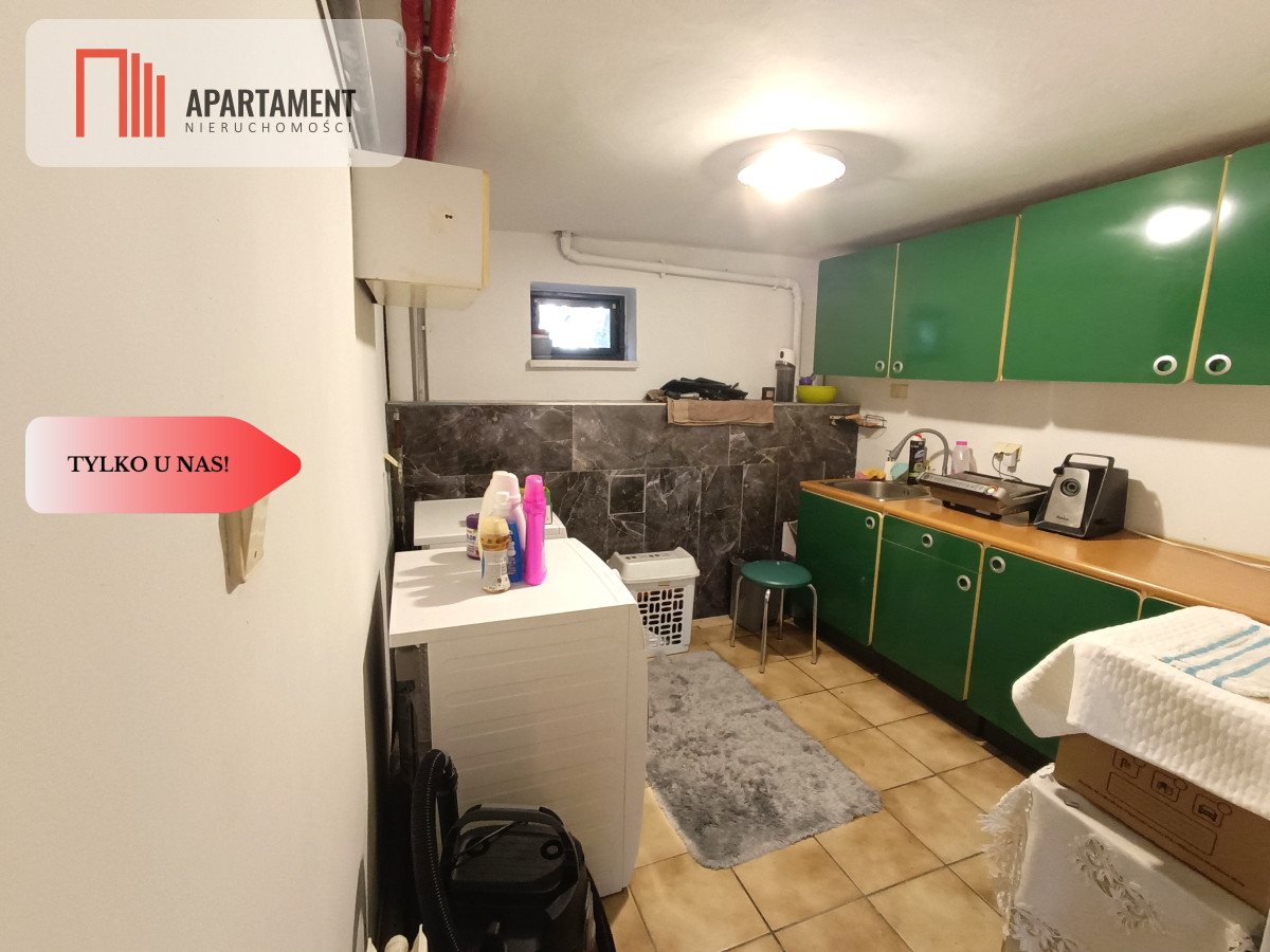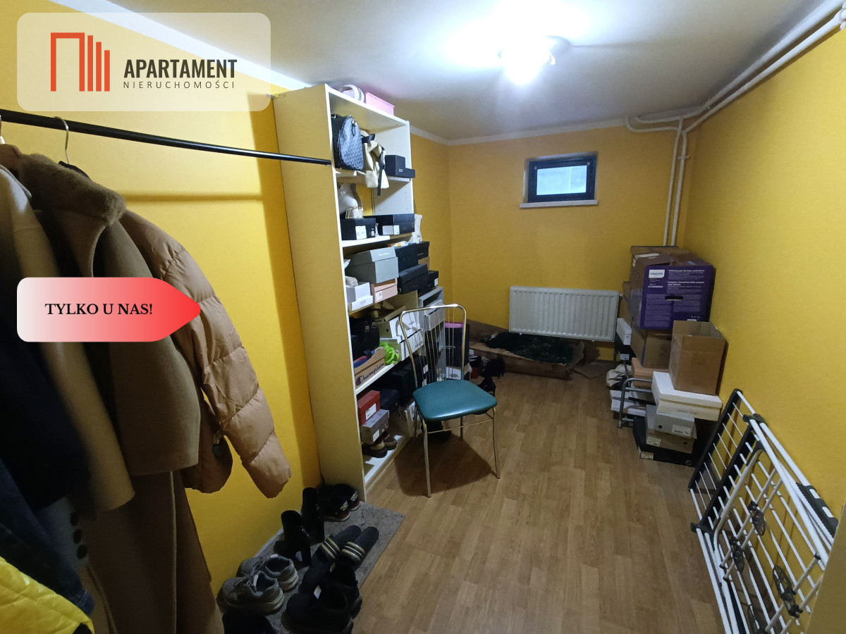 - Piwnica (część użytkowa): To ogromny atut domu! Oferuje około 60 m² powierzchni, gdzie znajduję się kotłownia, pralnia oraz dodatkowe pomieszczenie gospodarcze, zapewniając porządek w głównej części domu.
