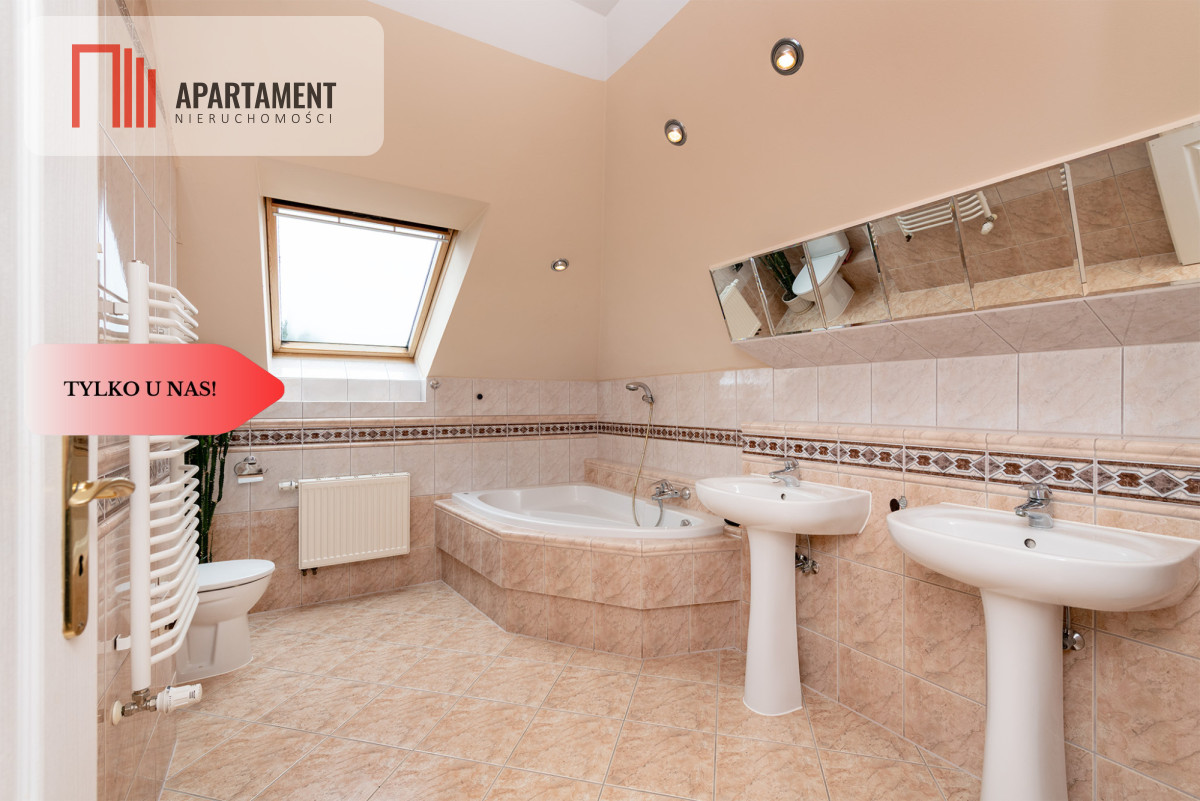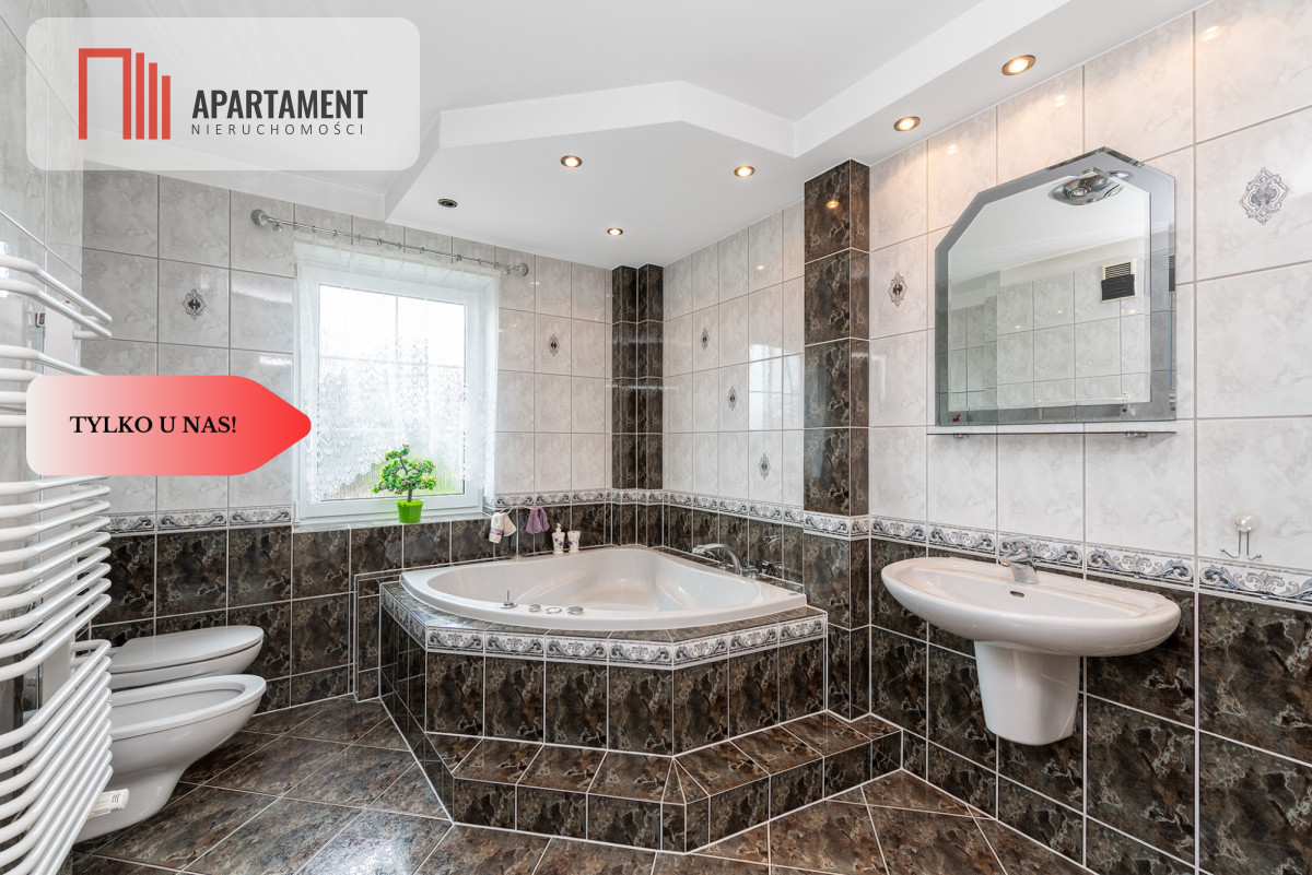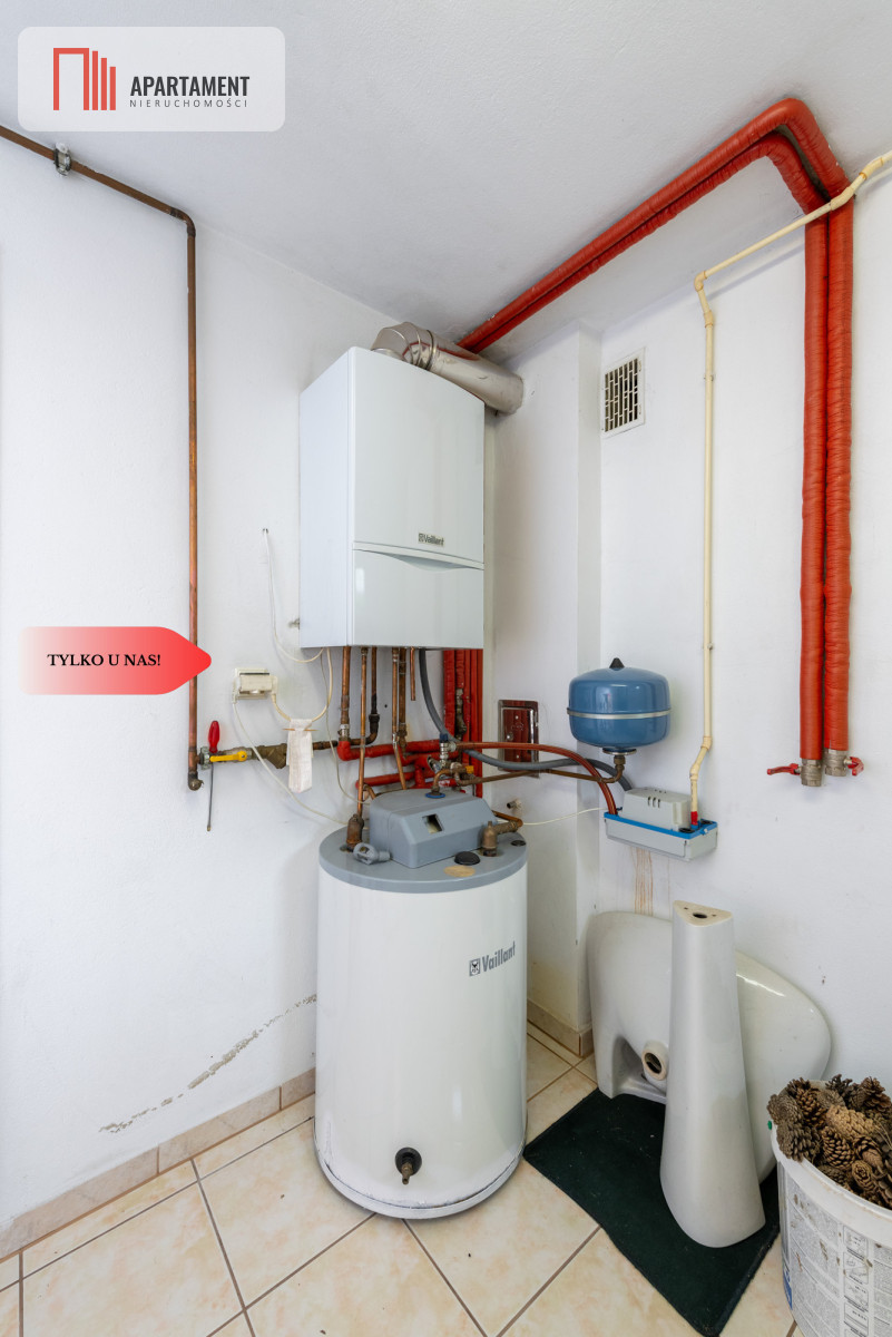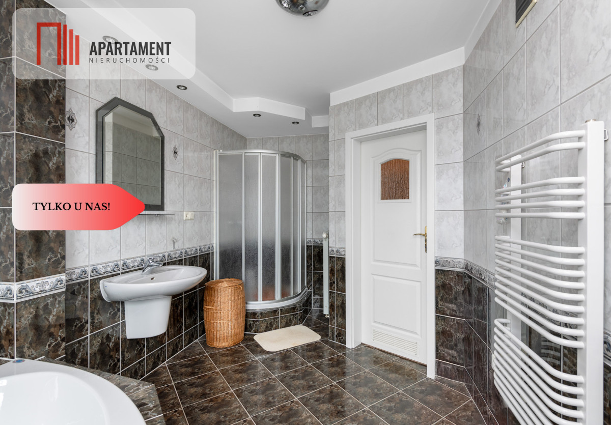 Do sprzedania pięknie wykończony, duży dom wolnostojący na przedmieściach Wołowa! Dom z roku 2000 posadowiony na pięknie zadbanej działce o powierzchni 861 m2. Powierzchnia użytkowa domu liczy 210 m2, częściowo podpiwniczony, w bryle budynku garaż jednostanowiskowy. Ściany grubości 41 cm (ocieplenie: wełna mineralna, cegła dziurawka), dach kopertowy pokryty dachówką ceramiczną firmy "Roben", okna pcv, w oknach rolety zewnętrzne. Posesja w całości ogrodzona. Ogrzewanie domu i wody użytkowej piecem gazowym. Dodatkowo w salonie kominek z rozprowadzeniem ciepła. W części piwnicznej mieści się kotłownia, pralnia i pomieszczenie gospodarcze z wyjściem na ogród. Na parterze znajdziemy wiatrołap, hol, dużą łazienkę z prysznicem i wanną, toaletę dla gości, gabinet, spiżarkę, przestronną otwartą na salon kuchnie wraz ze sprzętem agd. Z kuchni przechodzimy do salonu z którego duże drzwi balkonowe prowadzą na zadaszony taras pełen kwiatów z widokiem na zadbany ogród. Szerokie schody prowadzą nas na piętro na którym znajdziemy 4 sypialnie, 2 garderoby i łazienkę. Strych nieużytkowy. Ogród podzielony został na kilka stref: wypoczynkową, miejsce spotkań przy grillu, szklarnię i warzywniak. Dużo kwiatów, drzew owocowych, krzewów ozdobnych. Nieruchomość idealna dla rodziny, ze względu lokalizację, powierzchnię i układ pomieszczeń doskonale sprawdzi się dla osób pracujących zdalnie. Wysoki standard wykończenia. Dom gotowy do zamieszkania. Media miejskie: prąd, woda, kanalizacja, gaz. W bliskiej odległości, szkoły, sklepy, markety, punkty usługowe, do stacji pkp na pieszo ok. 20 minut.