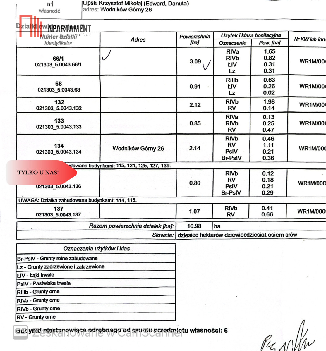 Grunty rolne : 9,11 ha + zabudowa mieszkalno - gospodarcza : 1.87 ha we wsi Wodników Górny