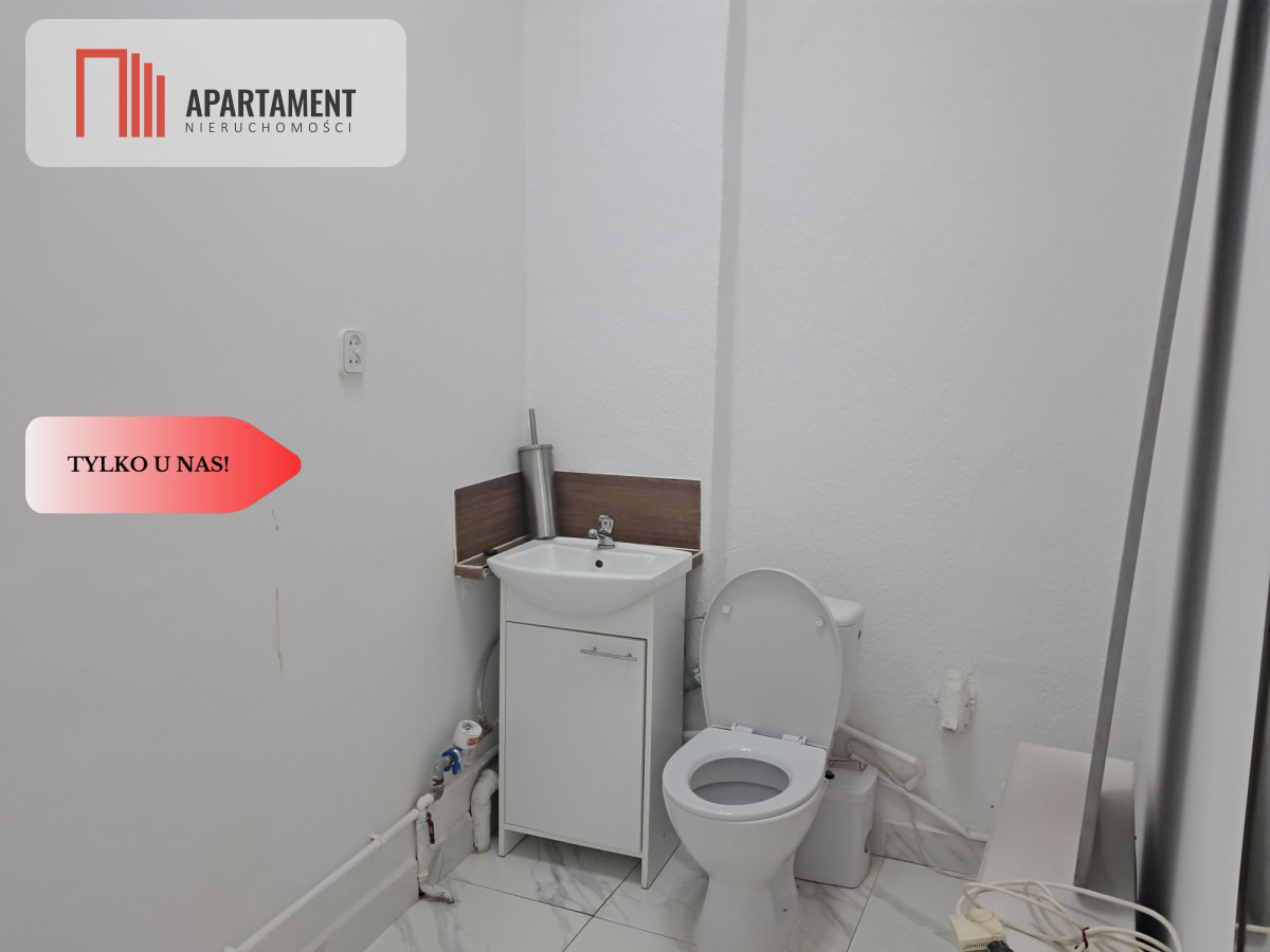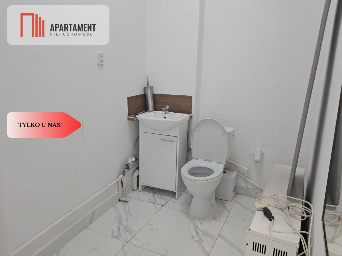 Lokal składa się z jasnego, ustawnego pomieszczenia głównego o powierzchni ok. 20 m², które znakomicie sprawdzi się jako sala sprzedaży, gabinet, punkt obsługi klienta, miejsce wykonywania usług lub przestrzeń biurowa. Dodatkowo do dyspozycji jest zaplecze o powierzchni ok. 5 m², idealne do aranżacji toalety z aneksem kuchennym lub jako pomieszczenie gospodarcze. Ta funkcjonalna przestrzeń pozwala na wygodne zaplecze socjalne oraz zapewnia komfort codziennej pracy.