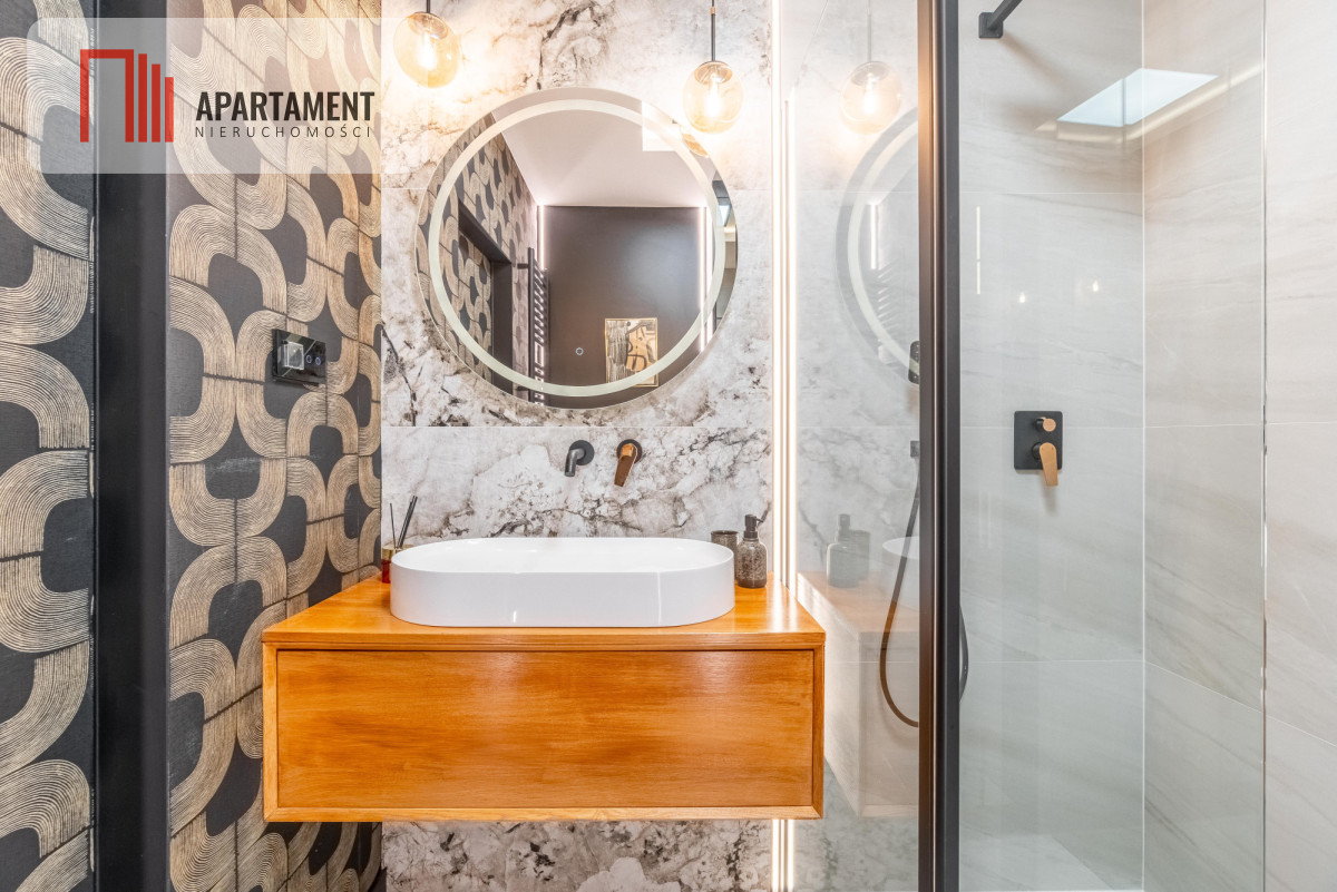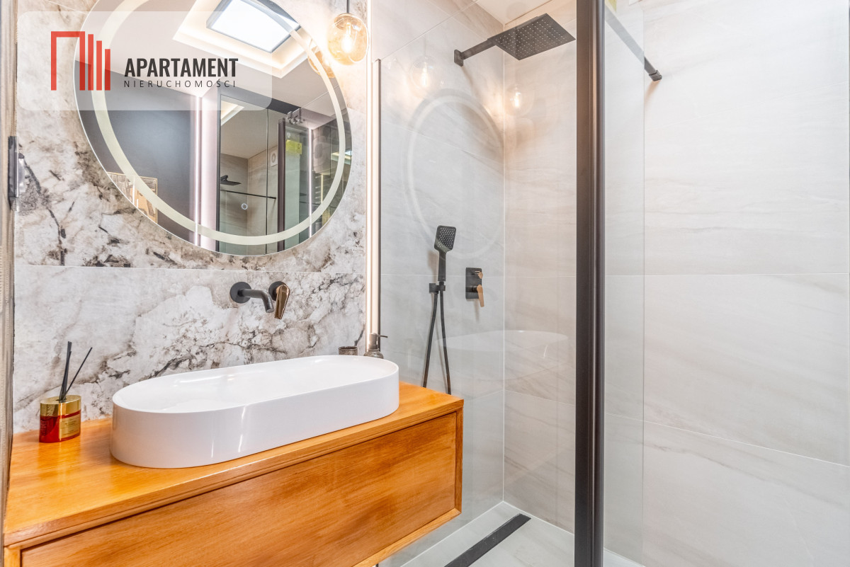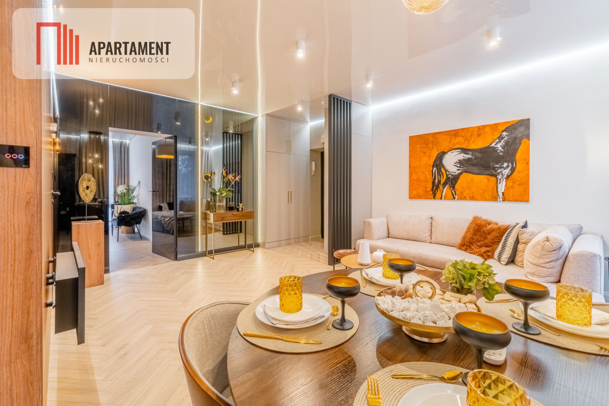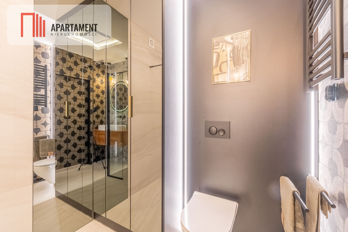 Mieszkanie urządzone na najwyższym poziomie z meblami głównie na zamówienie. Charakteryzuje się wysokim standardem wykończenia oraz luksusową i przemyślaną aranżacją Całość zaprojektowana przez cenioną i utalentowaną dekoratorkę wnętrz.