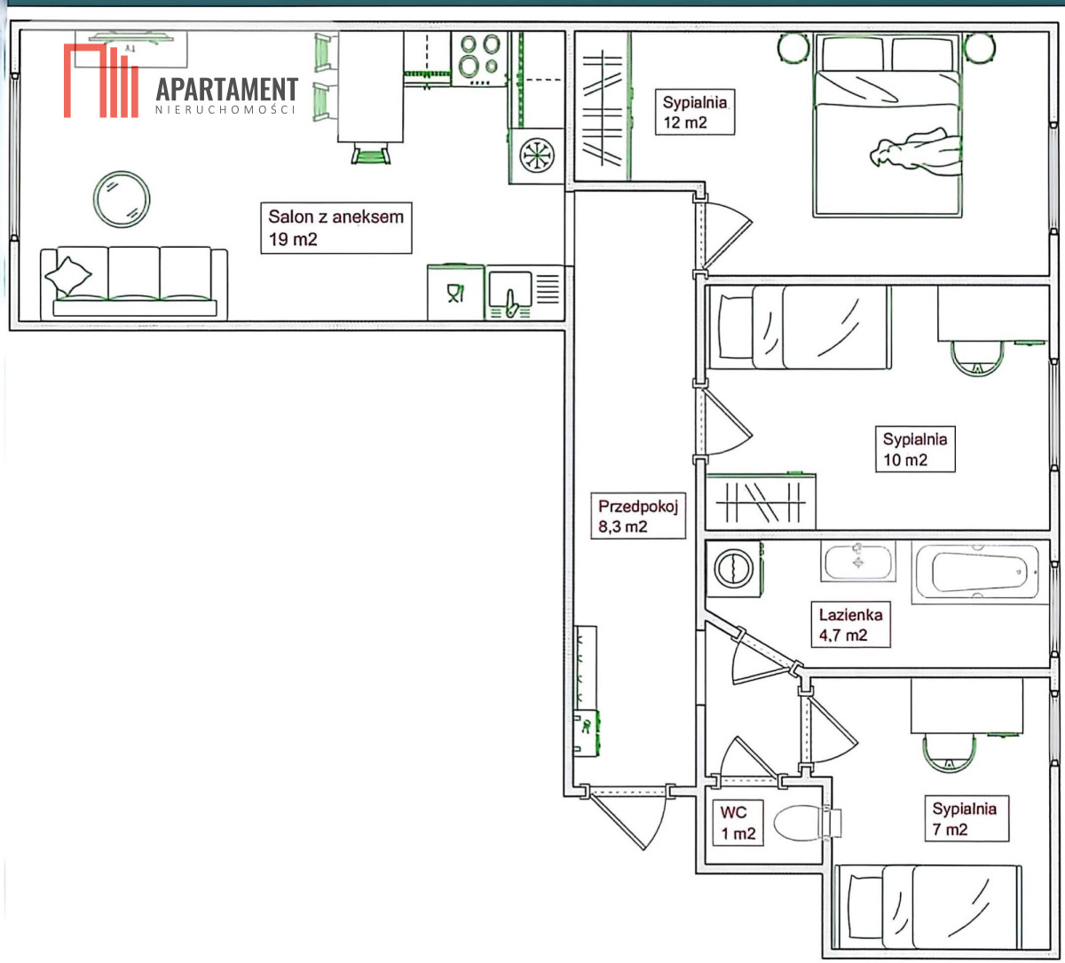 Zgodnie z Ustawą z dnia 26 lipca 2024 r. o zmianie ustawy o prawie autorskim i prawach pokrewnych, ustawy o ochronie baz danych oraz ustawy o zbiorowym zarządzaniu prawami autorskimi i prawami pokrewnymi, wykorzystywanie autorskich pomysłów, rozwiązań, kopiowanie, rozpowszechnianie zdjęć, fragmentów grafiki, tekstów opisów w celach zarobkowych, bez zezwolenia autora jest zabronione i stanowi naruszenie praw autorskich oraz podlega karze. Znaki towarowe i graficzne są własnością firmy Nieruchomości Apartament.