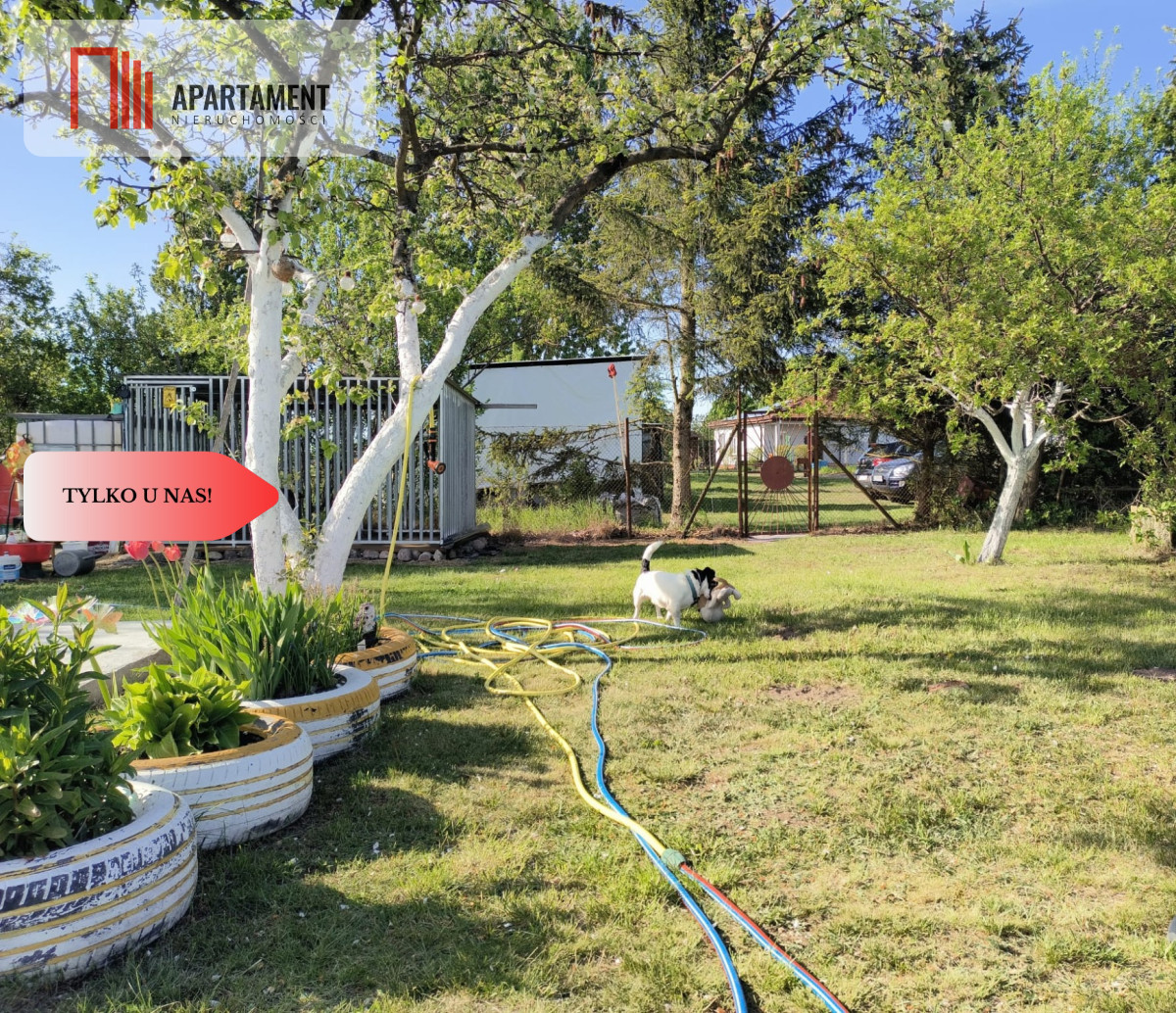 W skład ceny nieruchomości wchodzi również udział w działce wykorzystywany jako ogródek o powierzchni około 400 m² z nasadzeniami oraz miejscem do rekreacji. Dodatkowo do dyspozycji pozostaje blaszane pomieszczenie gospodarcze wykorzystywane jako garaż o powierzchni około 30 m² oraz pomieszczenie gospodarcze przeznaczone do przechowywania opału o powierzchni około 15 m².
