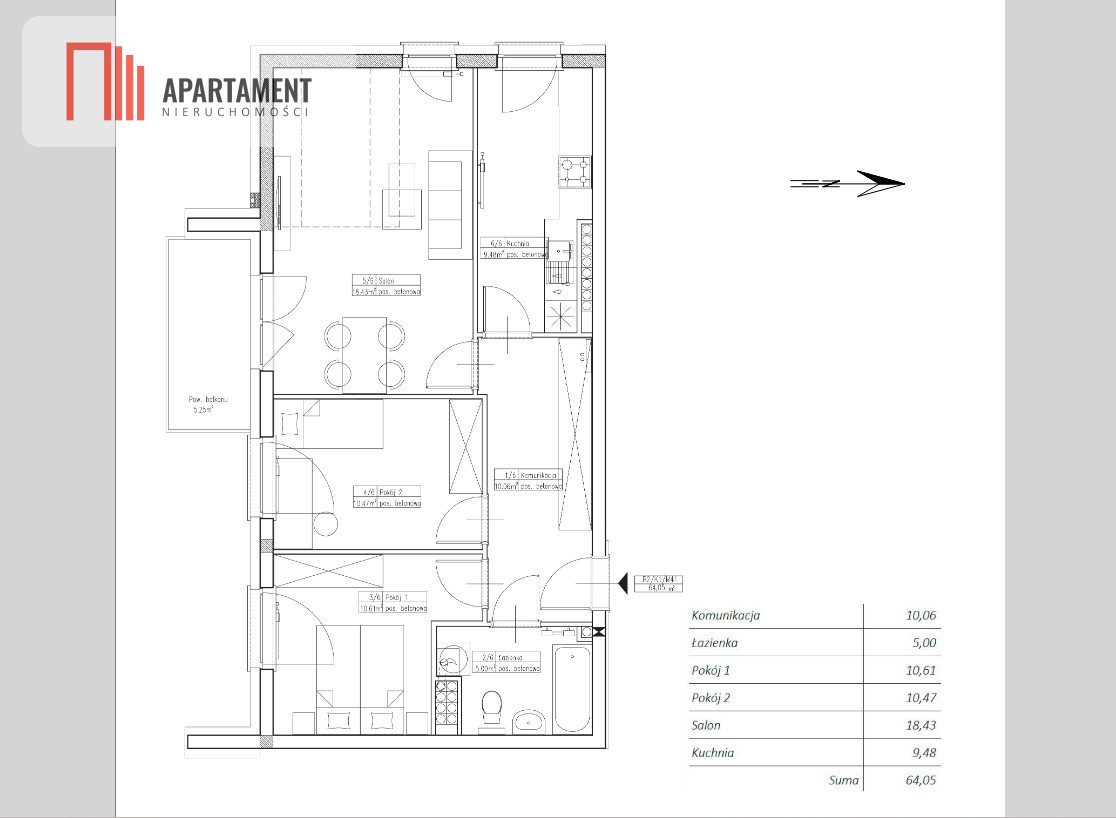 - Powierzchnia:64,05 m2