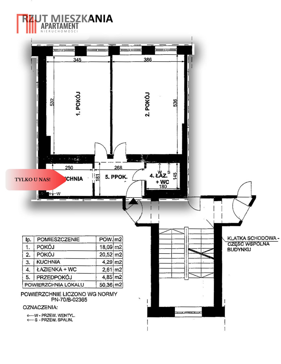 • powierzchnia 50,36 m²;