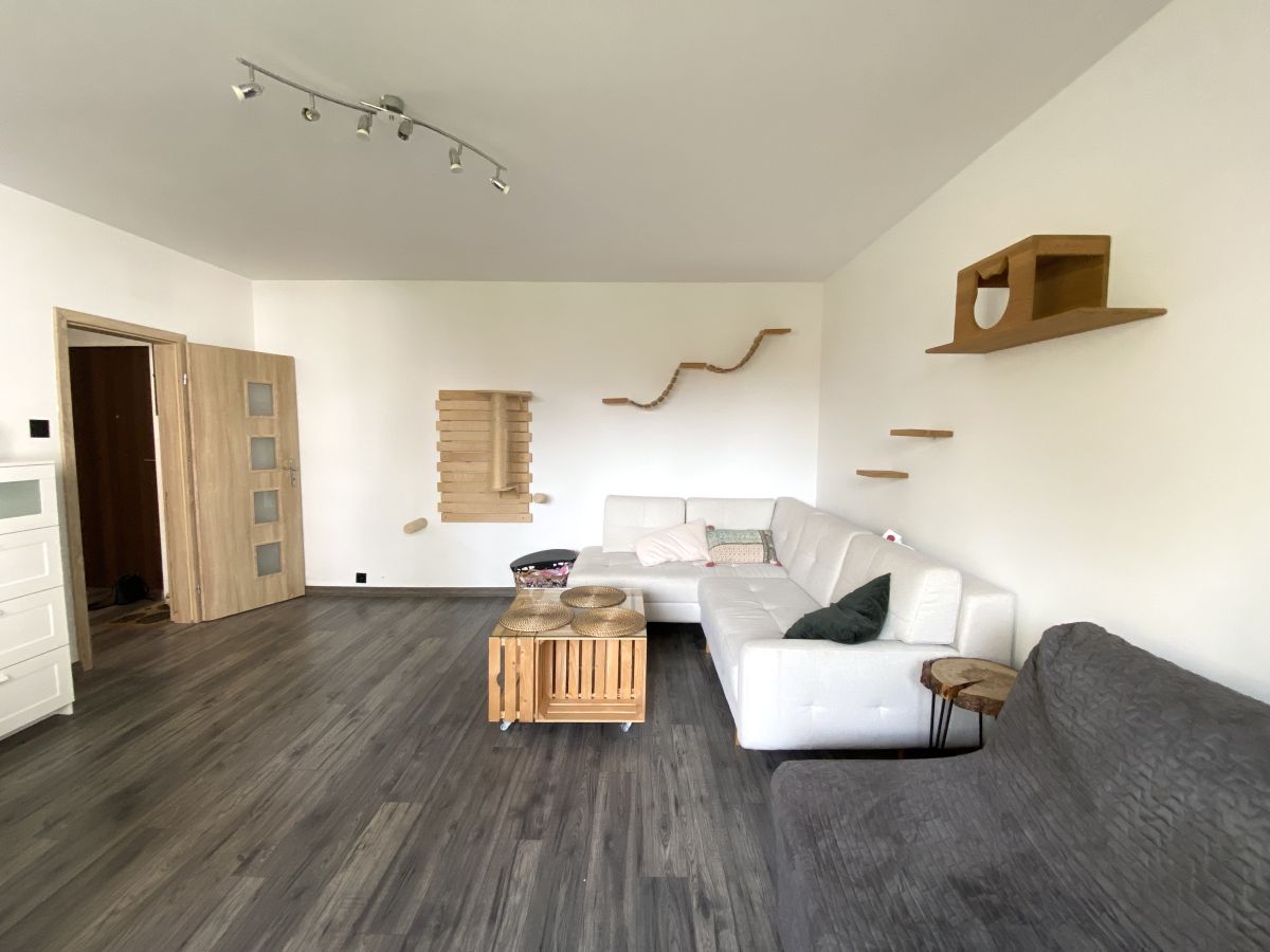 Funkcjonalne i przestronne mieszkanie oraz przyjazne dla właścicieli psów oraz kotów, co jest jego wielkim atutem. Wyposażone w kocie ścienne drabinki oraz schowki a dodatkowo zabezpieczone siatką na balkonie.